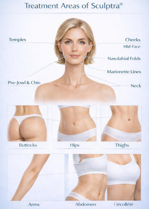 Sculptra® is an injectable biostimulatory treatment designed to restore facial volume and improve skin quality by stimulating the body’s natural collagen production. Instead of providing immediate filling effects, Sculptra® works gradually, supporting the skin’s structure from within and leading to subtle, natural-looking rejuvenation over time.